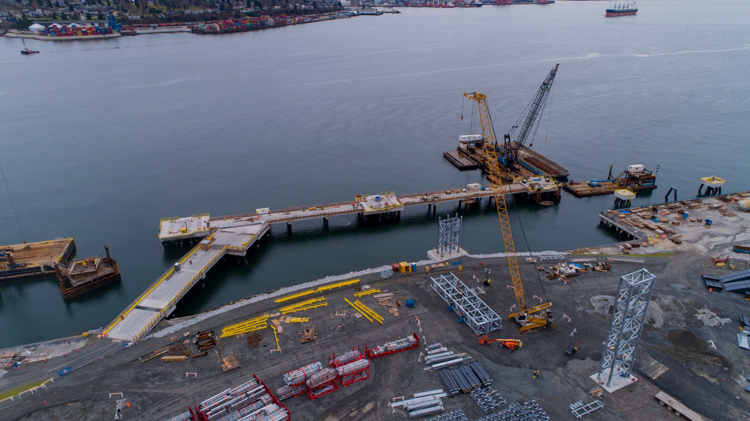 Carlson Construction Group’s marine division, Vancouver Pile Driving (VanPile), contributed to the expansion of the G3 Terminal on the north shore of Burrard Inlet, enabling increased bulk shipment capacity and optimizing grain receiving, storage, and shipping operations on Canada’s west coast.