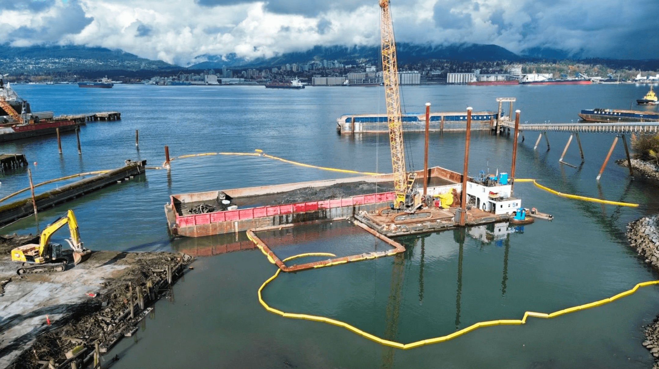 VanPile completed a targeted remediation and habitat enhancement project within the Vancouver Fraser Port, which included dredging contaminated sediment and constructing a rock berm revetment. The project was completed ahead of schedule and within the environmental window to protect migratory fish species.