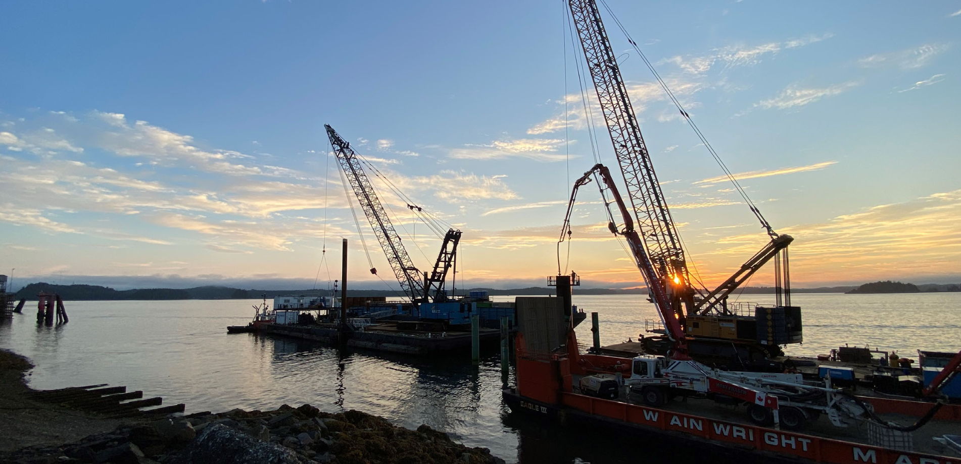 VanPile was awarded the design-build contract for a fuel facility between Digby Island and the City of Prince Rupert, delivering two large EPS-filled concrete floats and deep rock-socketed steel piles. The project involved heavy marine construction in a remote location with challenging geotechnical conditions.
